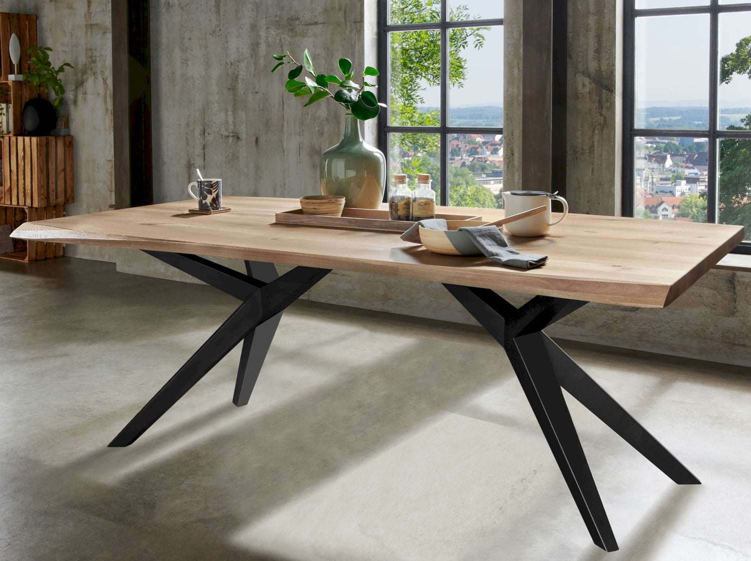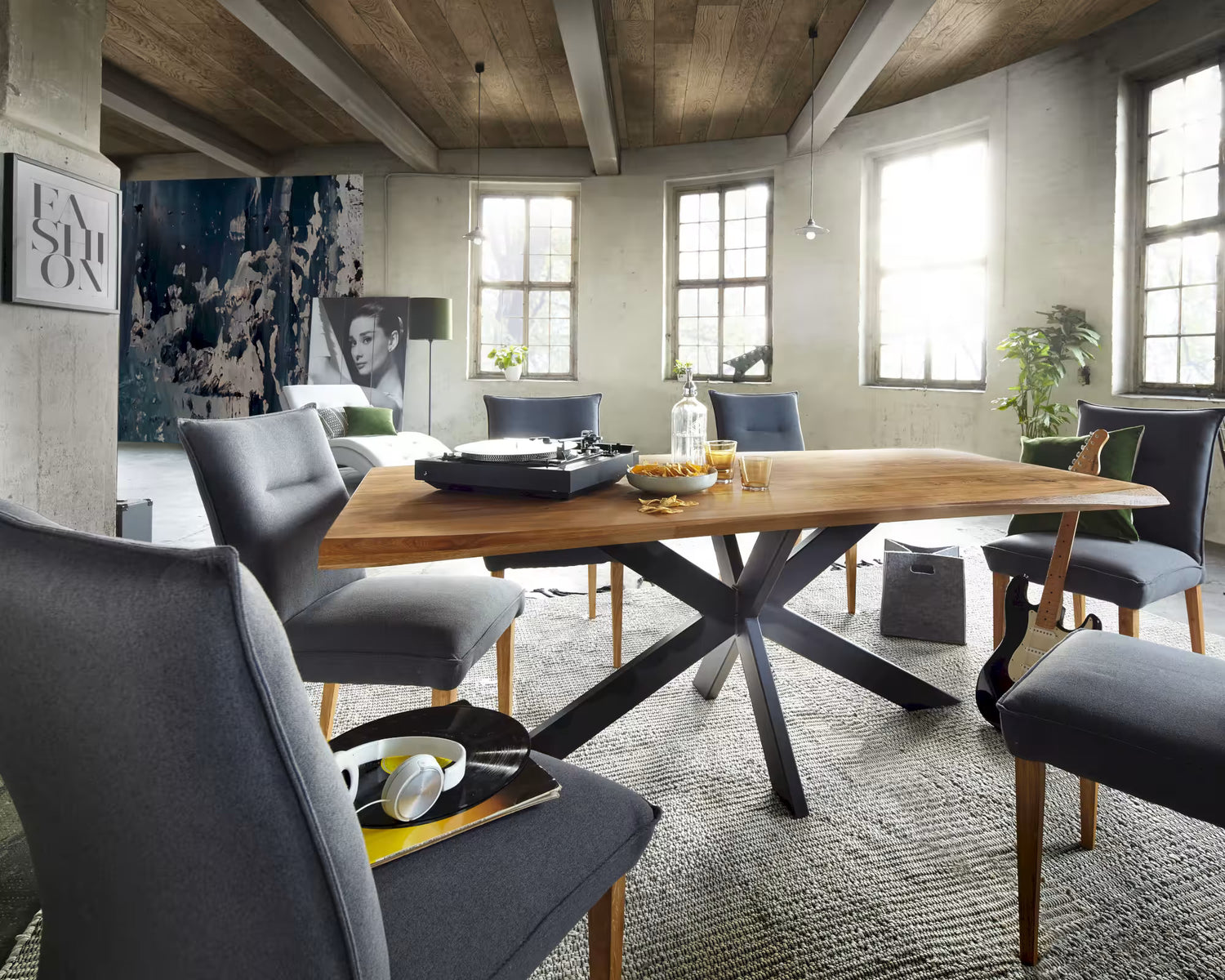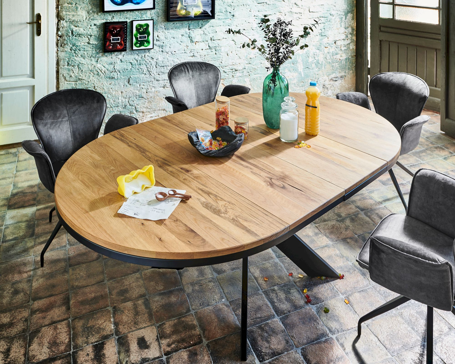 Xenia II is perfect choice for your dining area. The wild oak table top has been elaborately processed and sanded. The black table legs are made of metal and make the table distinctive.