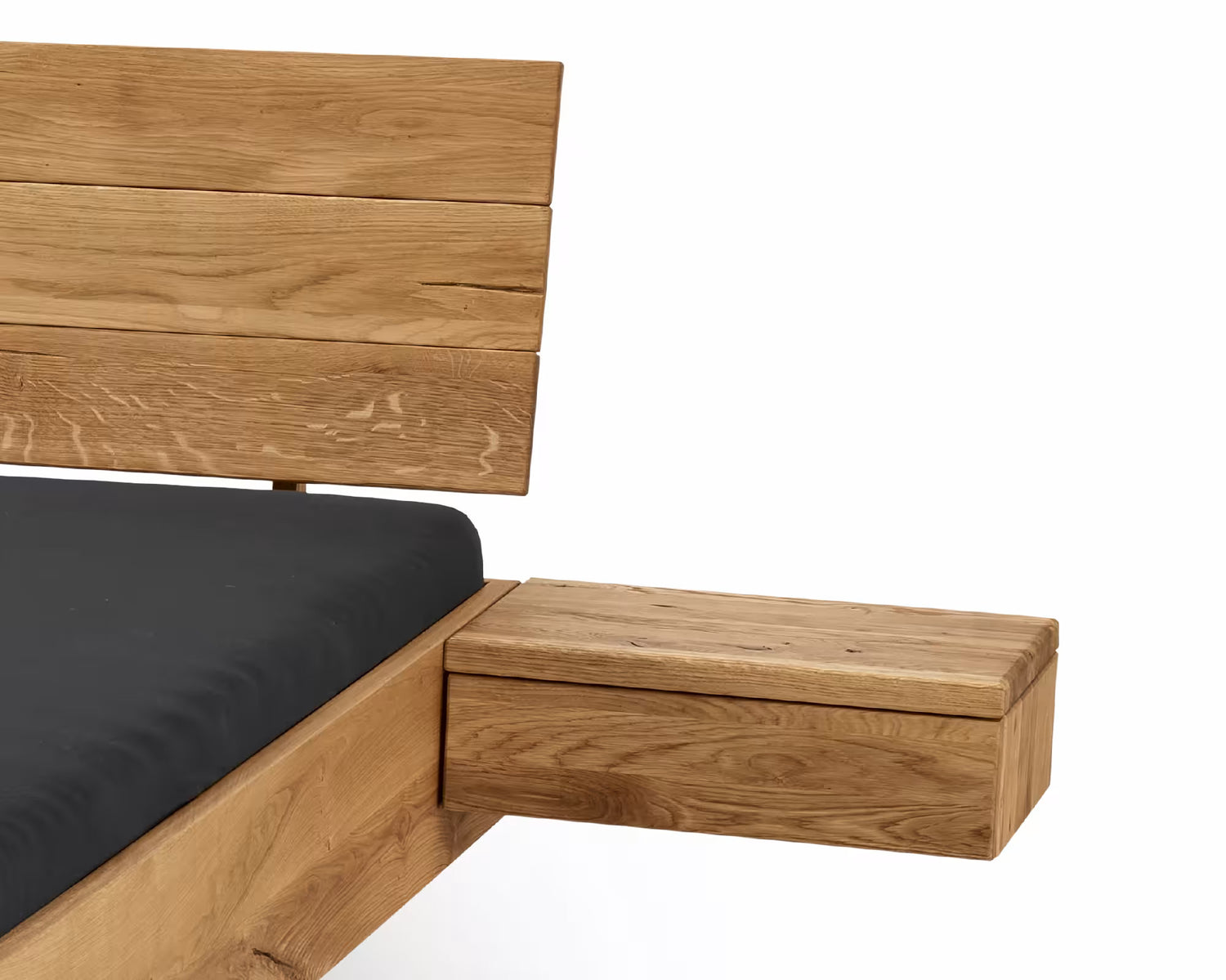 The Dolce Vita bedside table with drawer can be mounted on the left or right of the bed and is also available in wild oak.